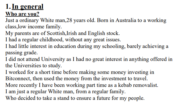 The terrorist had uploaded a manifesto to Twitter, it's been taken down since then but i saw this posted by another person on twitter.