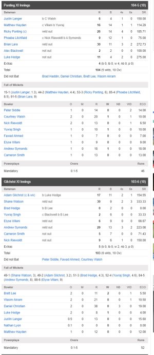 Prolific Australian opening pair Justin Langer and Matthew Hayden reunited for Ricky Ponting's team, who faced a Adam Gilchrist-skippered XI.
